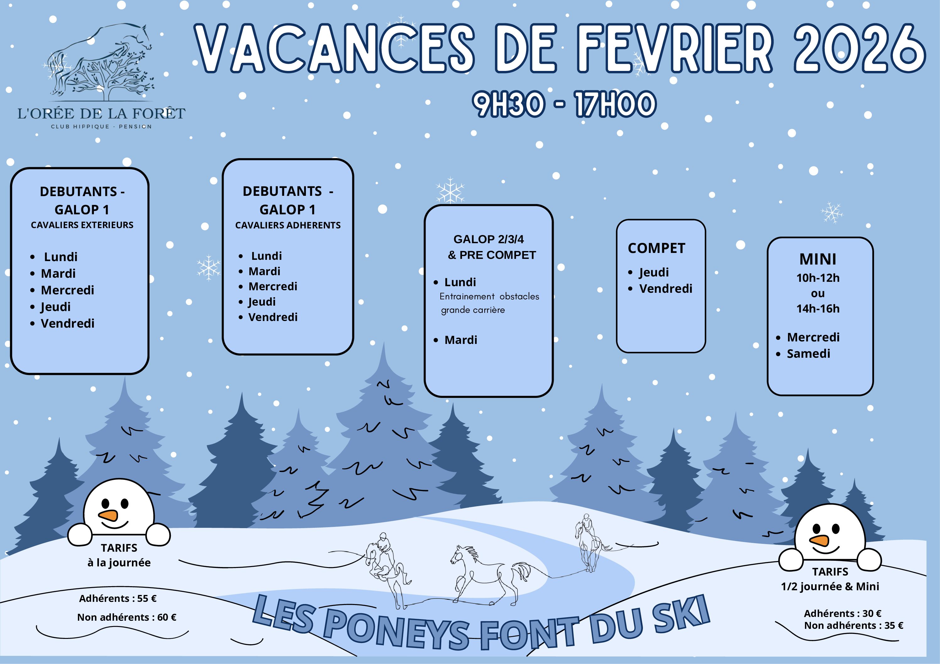 Et les stages des Vacances scolaires, aussi ouverts aux non-adhérents !